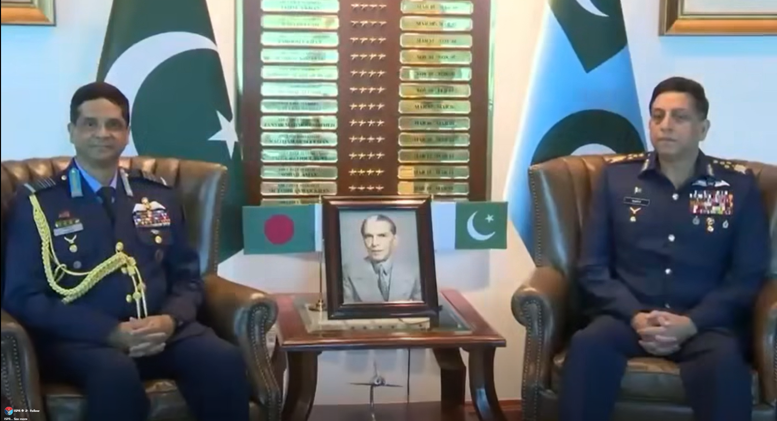 The visiting Air Chief was accorded a Guard of Honour. Air Chief Marshal Zaheer Ahmed Baber Sidhu briefed him on PAF’s recent advancements and reaffirmed Pakistan’s commitment to supporting Bangladesh Air Force through a comprehensive training framework from basic to advanced flying and specialized courses across PAF institutions. He also assured fast-tracked delivery of Super Mushshak trainer aircraft, along with a complete training and long-term support ecosystem.
